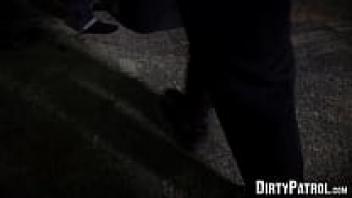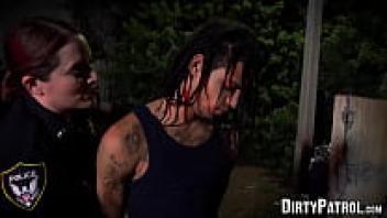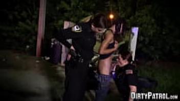 Big breasted police officers bang with skinny thugs in public.
