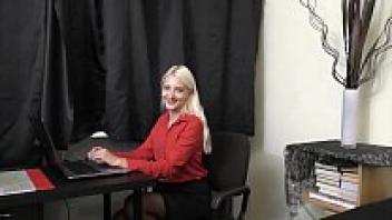 Shaved fingers and a gorgeous pussy, secretary Milf