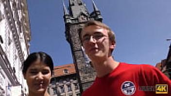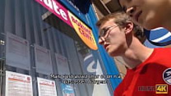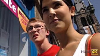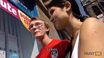 HUNT4K. Nerdy cuckold obediently watches his girlfriend’s cock with a stranger.