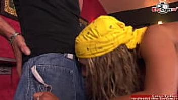 During the fmm 3some, a skinny girl wearing stockings gets it anal.
