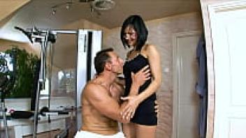 A funny brunette milf uses a big, hard cock to open her pussy.