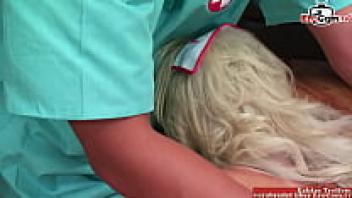 In the phony hospital, a blonde nurse with large breasts and tattoos is in love.