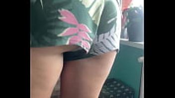 Pantyhose and an upskirt masturbate are playing in the kitchen.