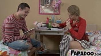 Following the English lesson, the step-sister tries Anal.